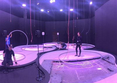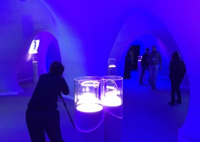 Managing Technologies for Futuristic Exhibition.The exhibit features 4 completely unique experiences under 1 roof using 20 projectors, over a dozen computers, people counters, a robotic cradle, 3 Oculus Rifts, very ugly and very loud air conditioner units, numerous sensors, 6 iPads, dozens of stage lights, dozens of speakers, a 10 foot tall, 6 foot diameter LED column, a robotic cat, and too many other things to remember.
